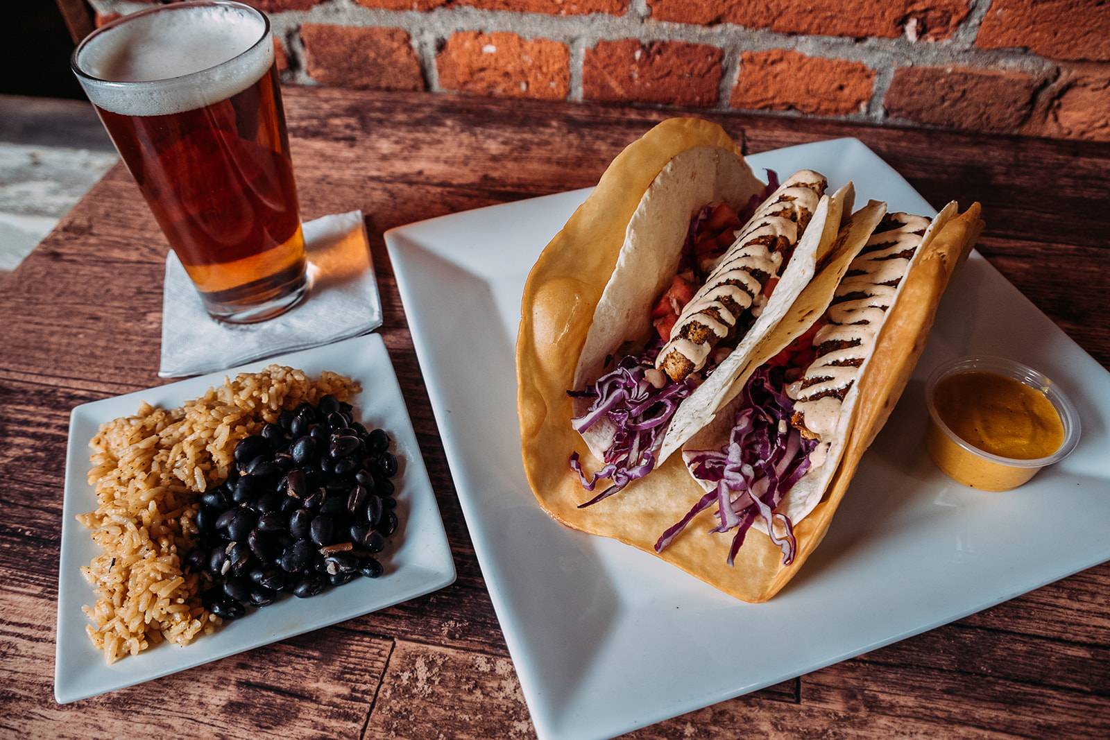 taco night at 551 West Their Famous Fish Tacos are stacked with blackened (or grilled) mahi mahi, pepper jack cheese, shredded ...